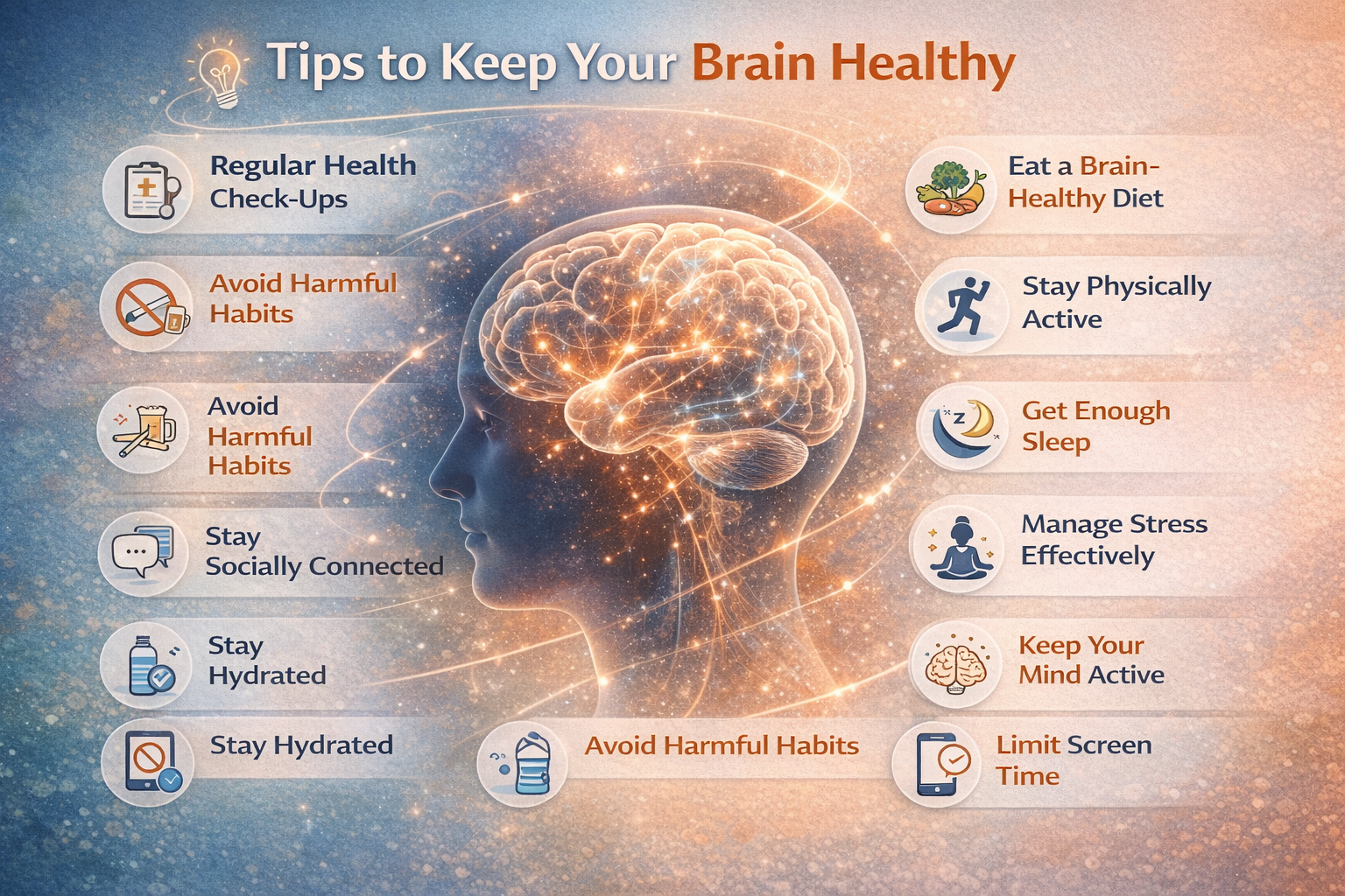 In today’s fast-paced world, stress, poor lifestyle habits, and excessive screen time can negatively impact brain function. The good news is that with a few simple habits, we can keep our brain sharp and healthy.